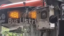 Bus Transjakarta Tabrak Tiang di Pasar Minggu