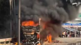 Viral Bus Damri Terbakar di Tol JORR