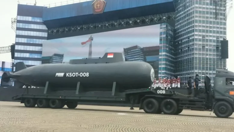 Kapal selam tanpa awak itu, yang diberi identitas KSOT-008 dan dilengkapi logo PT PAL, ikut diperlihatkan bersamaan dengan barisan alutsista TNI lainnya dalam defile di halaman Monas.