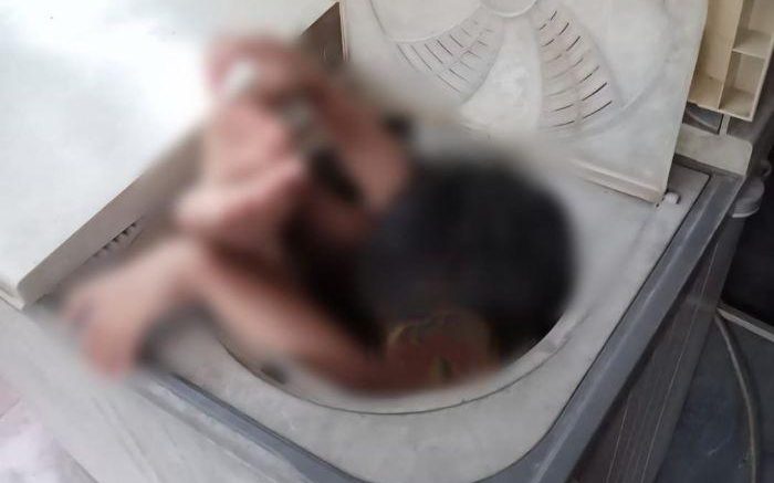 Tiba-tiba terdengar suara teriakan anaknya, dan setelah dicek, si bocah sudah masuk ke dalam mesin pengering dengan posisi duduk tersangkut, sementara tangan serta kakinya terhimpit.