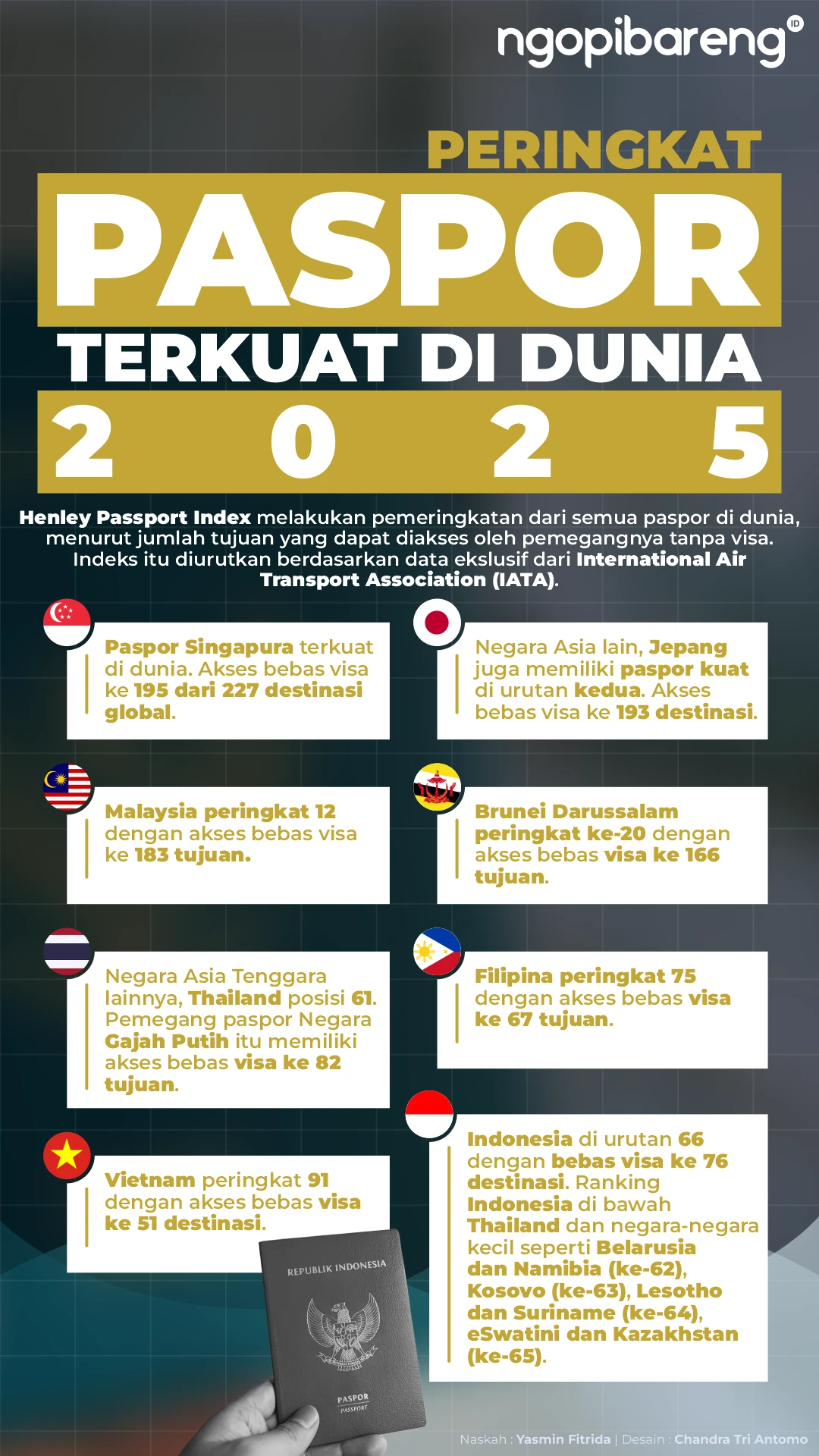 Berikut ini info grafis peringkat paspor terkait di dunia 2025.