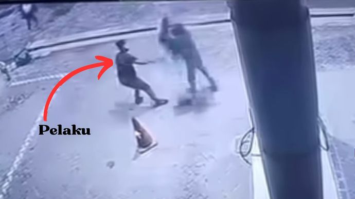 Ketegangan pun meningkat. Pelaku yang diidentifikasi sebagai M tiba-tiba mengeluarkan senjata tajam dan menantang korban untuk berkelahi.
