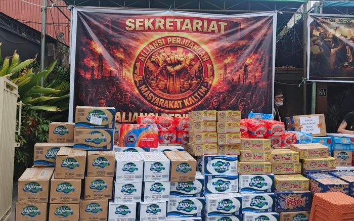 Salah satu posko terlihat berdiri di depan pusat perbelanjaan Mall Lembuswana, tepatnya di simpang Jalan M Yamin dan Jalan WR Soepratman. Dari pantauan di lokasi, posko tersebut dipenuhi berbagai bantuan logistik, mulai dari air mineral hingga makanan ringan seperti biskuit untuk kebutuhan peserta aksi.