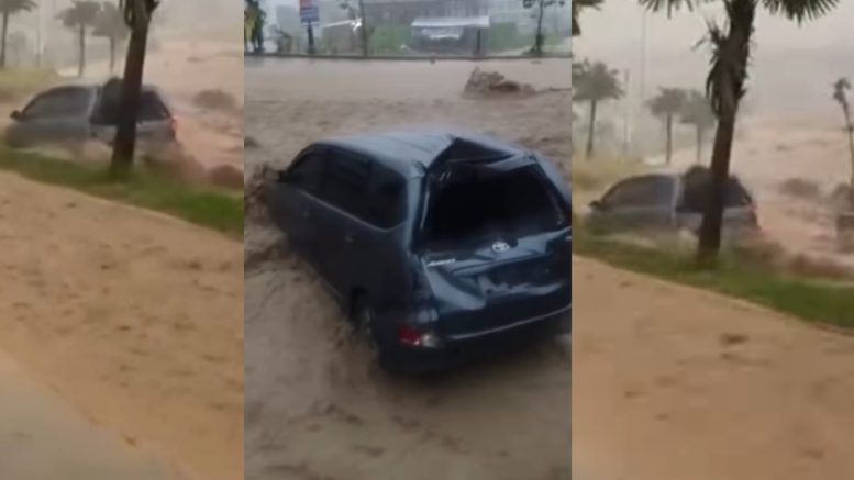“Tuh mobil tuh palid, mobil palid, motor hanyut (Itu mobil terbawa arus, motor hanyut),” terdengar suara warga dalam rekaman tersebut.