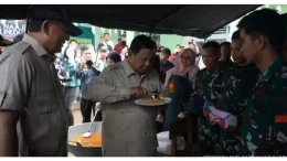 Presiden Prabowo Subianto menikmati sepiring nasi goreng yang dimasak oleh prajurit TNI bersama ibu-ibu pengungsi di dapur umum posko pengungsian Desa Salareh Aia, Kecamatan Palembayan, Kabupaten Agam, Sumatera Barat, Kamis….