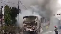 Sebuah bus angkutan penumpang dilaporkan terbakar disertai bunyi letupan kecil saat melaju di Jalan Diponegoro, Kecamatan Tambun Selatan, Kabupaten Bekasi, pada Sabtu (10/1/2026). Peristiwa tersebut…