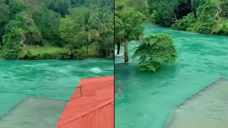 “Danau Singkarak meluap,” ujar pengunggah dalam video yang menunjukkan kejernihan air dengan refleksi warna kehijauan.