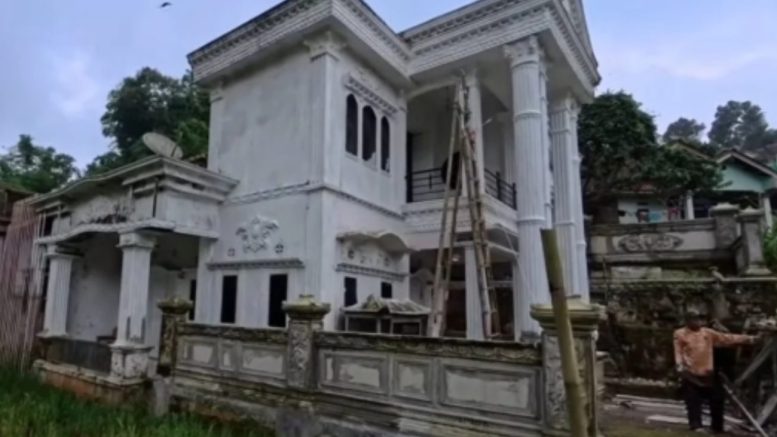 Sebuah rumah di Desa Bantarujeg, Kecamatan Bantarujeg, Kabupaten Majalengka, Jawa Barat tampak mencuri perhatian dari kejauhan. Bangunannya terlihat megah dengan gaya arsitektur Eropa dilengkapi pilar besar, lengkungan elegan, pagar artistik, hingga ornamen yang biasanya identik dengan hunian bernilai miliaran rupiah. Namun, rumah yang sempat viral di media sosial ini justru dikenal dengan sebutan “rumah palsu”.