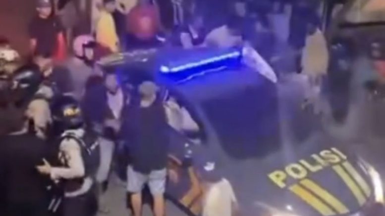 Dalam kejadian tersebut, situasi sempat memanas hingga terjadi aksi pelemparan terhadap mobil dinas kepolisian yang menyebabkan kerusakan.