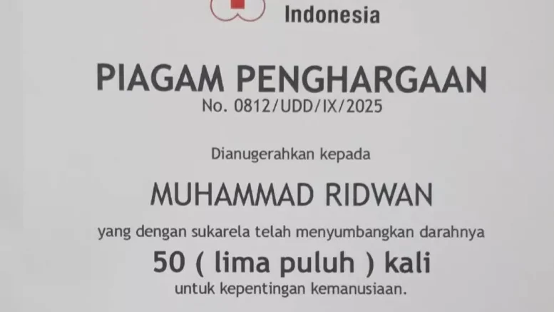 Dalam unggahan akun TikTok @r.i.d.w.a.n83 pada Rabu (12/11/2025), pria bernama Muhammad Ridwan itu menyebut bahwa ia sebenarnya sudah melakukan donor darah hingga 59 kali, meski sertifikat untuk 50 kali donor baru diterimanya belum lama ini.