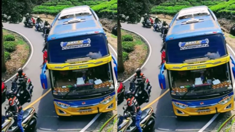 Di media sosial beredar luas sebuah video rombongan pengendara motor yang tiba-tiba menghentikan laju bus di area turunan dan tikungan. Salah satu pengendara motor Yamaha Nmax terlihat memotong jalur bus, kemudian berhenti seolah-olah menghadang kendaraan besar tersebut.