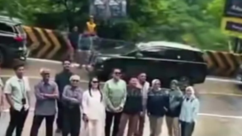 Dalam rekaman terlihat sejumlah kendaraan berhenti di tikungan curam, sementara beberapa orang turun untuk berfoto. Akibatnya, kendaraan lain terpaksa berhenti dan menunggu hingga aktivitas tersebut selesai.