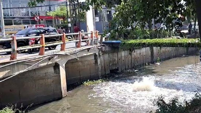 Semburan gelembung yang bercampur gas di sungai kawasan Rungkut Madya masih terjadi hingga Jumat (17/10/2025) siang.