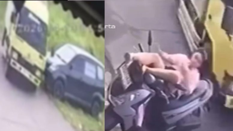 “Untung wanita yang sedang tiduran di motor tidak kena,” tulis keterangan tersebut.
