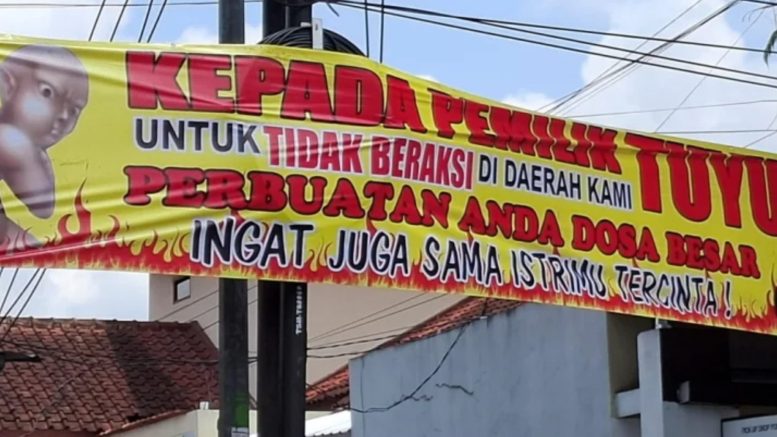 Spanduk bertuliskan “Kepada pemilik tuyul untuk tidak beraksi di daerah kami” dipasang di tepi jalan kampung dan menarik perhatian masyarakat sekitar.